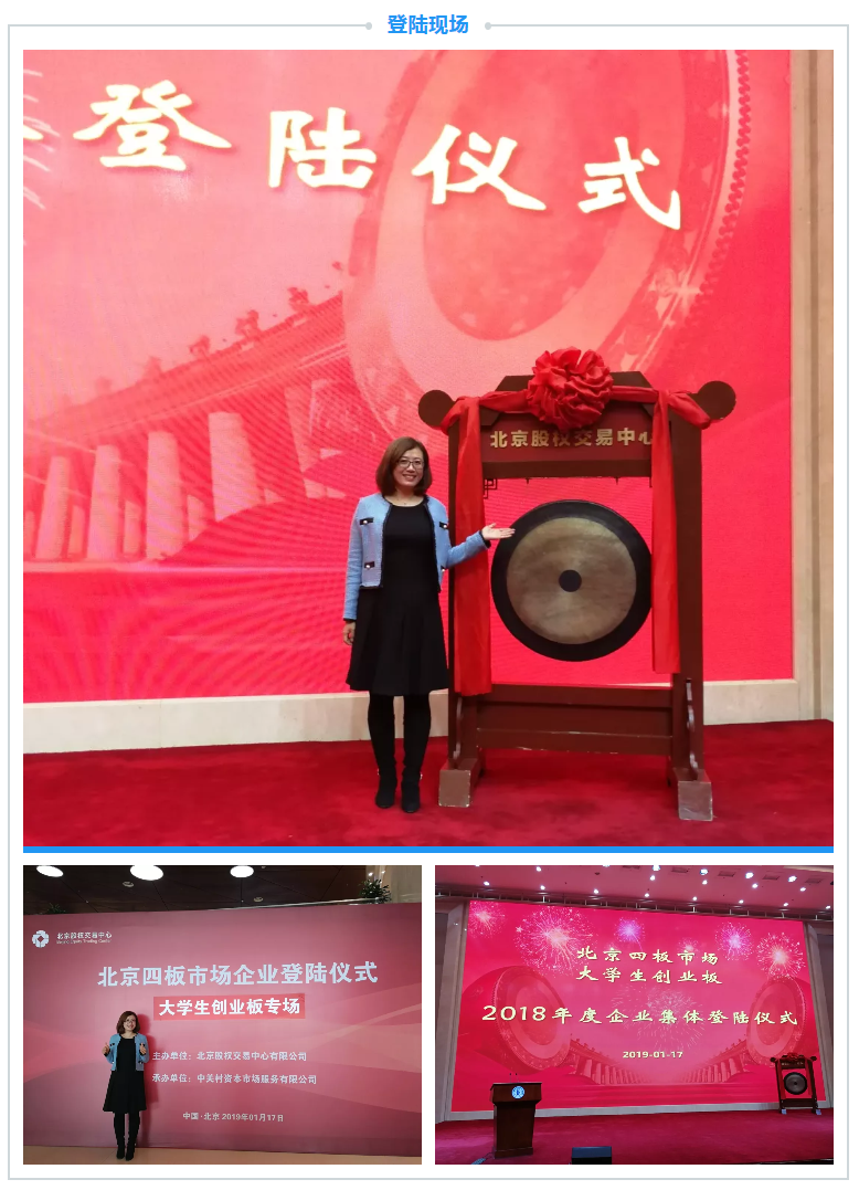 2019年1月17日上午,北京四板市场大学生创业板2018年度上板企业集体登陆仪式在中关村国家自主创新示范区展示中心会议中心一层隆重举行,包含国科LETOU-乐投(中文)官方网站在内的近40家大学生创业企业在此敲响了资本市场之锣。